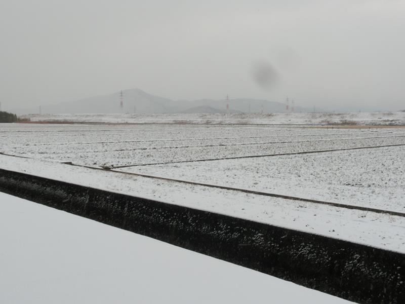 わ~。裏の田んぼも雪化粧。