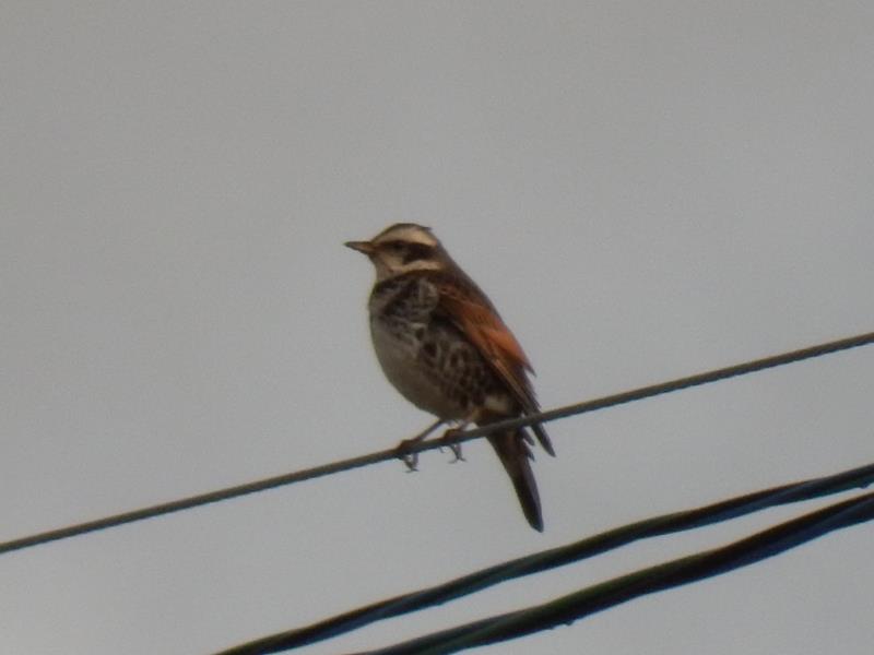 30m位先の電線にとまったツグミ