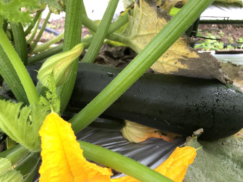残念なことに、黄色のズッキーニの先端が折れてしまった。