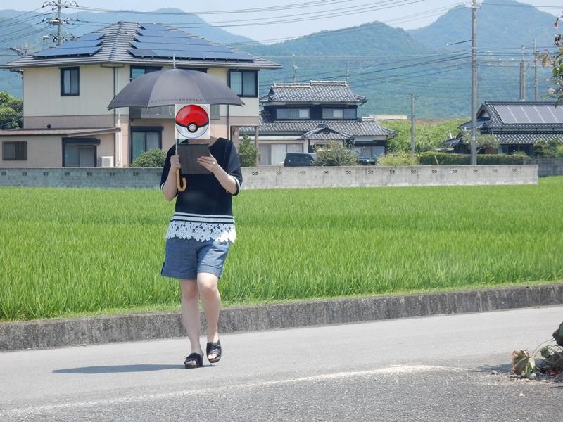 屋外に出るのを嫌がる彼女も、日傘をさして探してます。