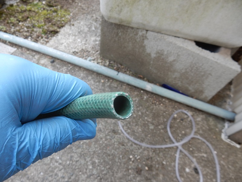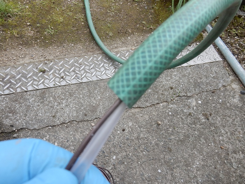 水道ホースの中にエアーホースを通します。