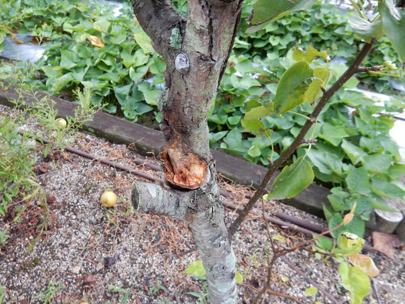 梨の木が折れてる。