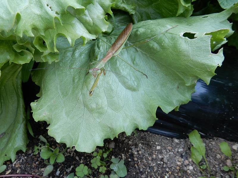 よく観察するとカマキリがいます。