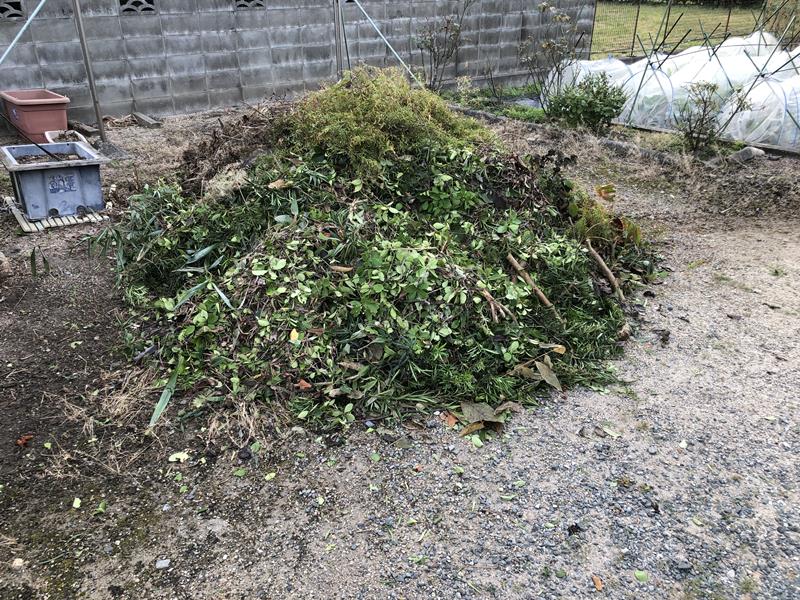 剪定した葉っぱは明日改修に来ます。