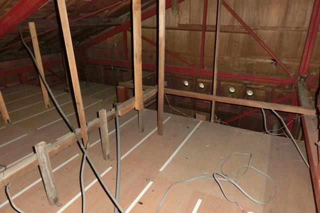 場所を特定するために、天井裏に登ってみました。