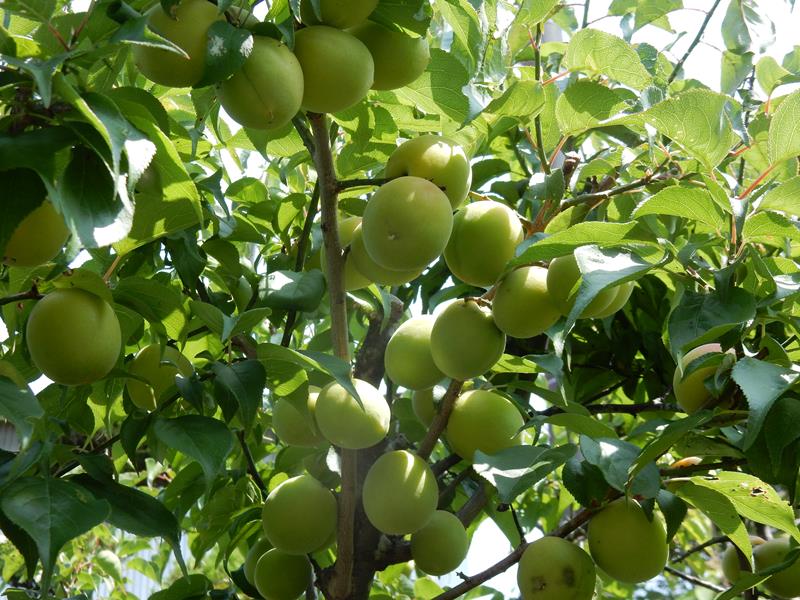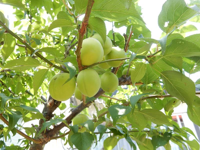 庭の梅を収穫する