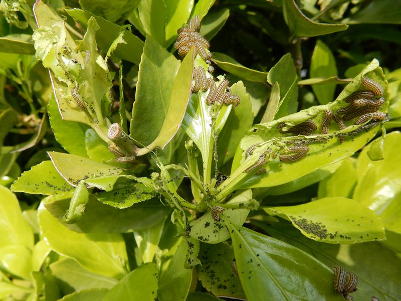 マサキの生け垣にチャドクガの幼虫が大発生!!