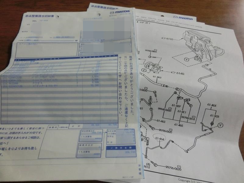 エアコンが故障し、修理に出していた愛車が戻ってきました。