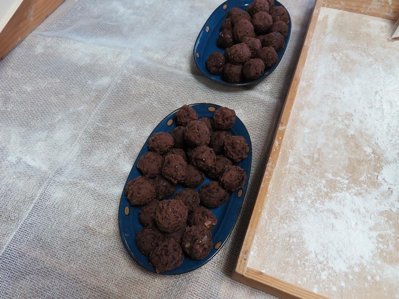 昨日煮たアンコを丸めます。