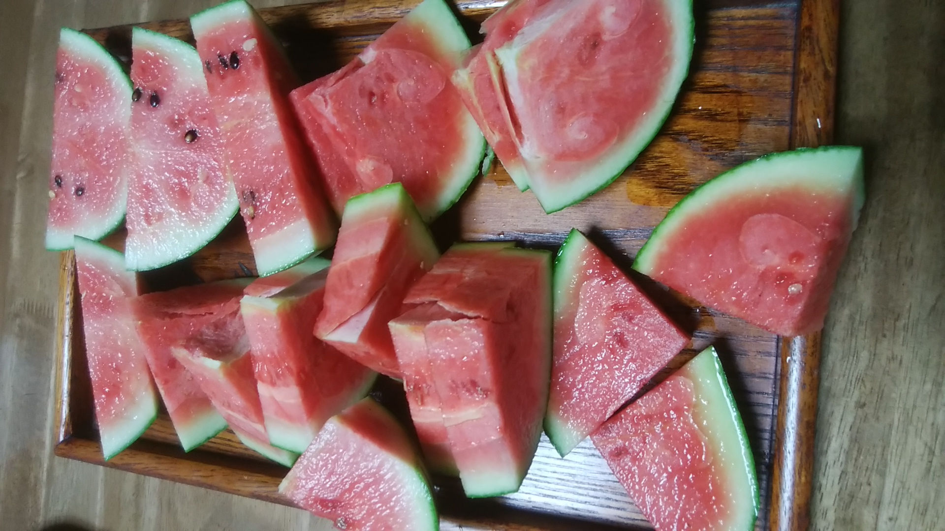 午後の休憩に小玉スイカを食べることにした。