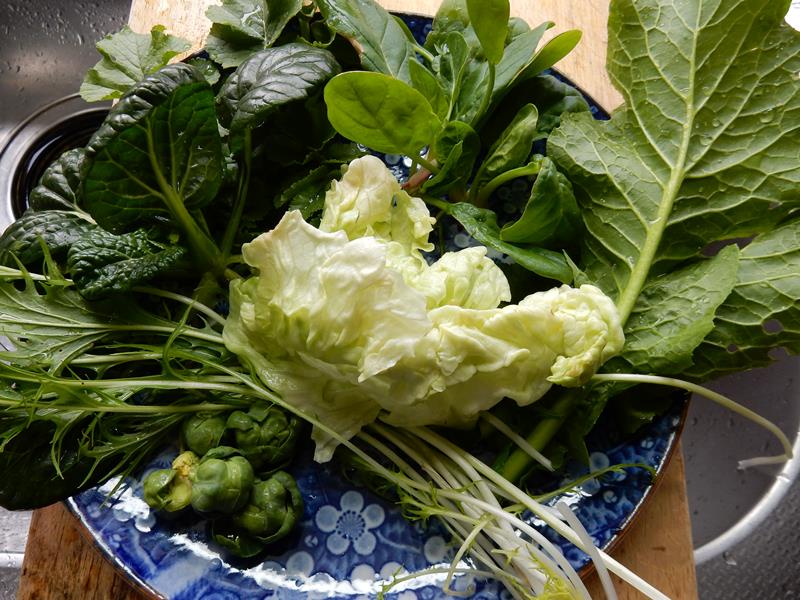 うちに生えている野菜をかき集めて作ってみる (家内が)