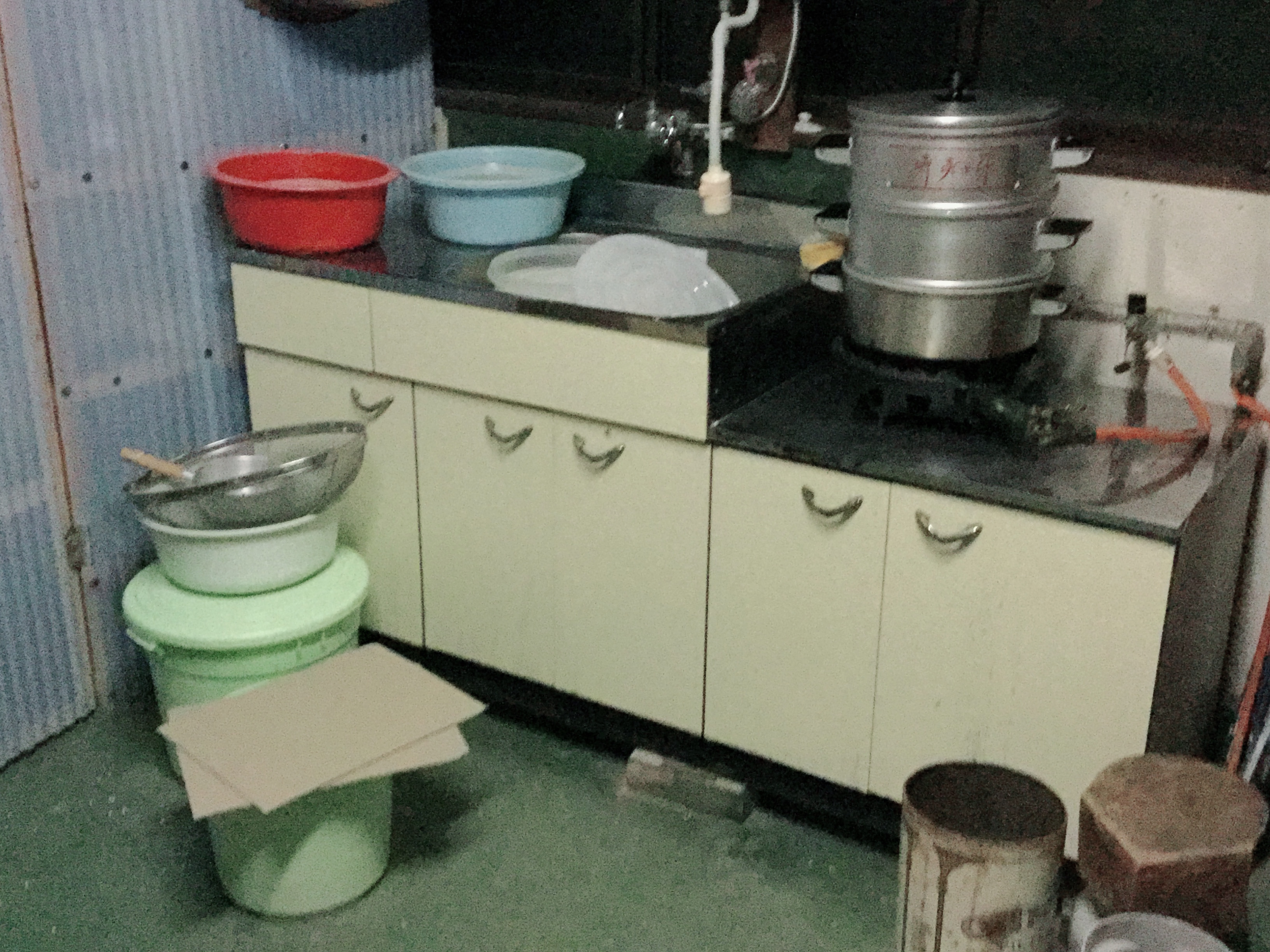 このあとコンクリートの床に溢れた水をブラシで掻き出し