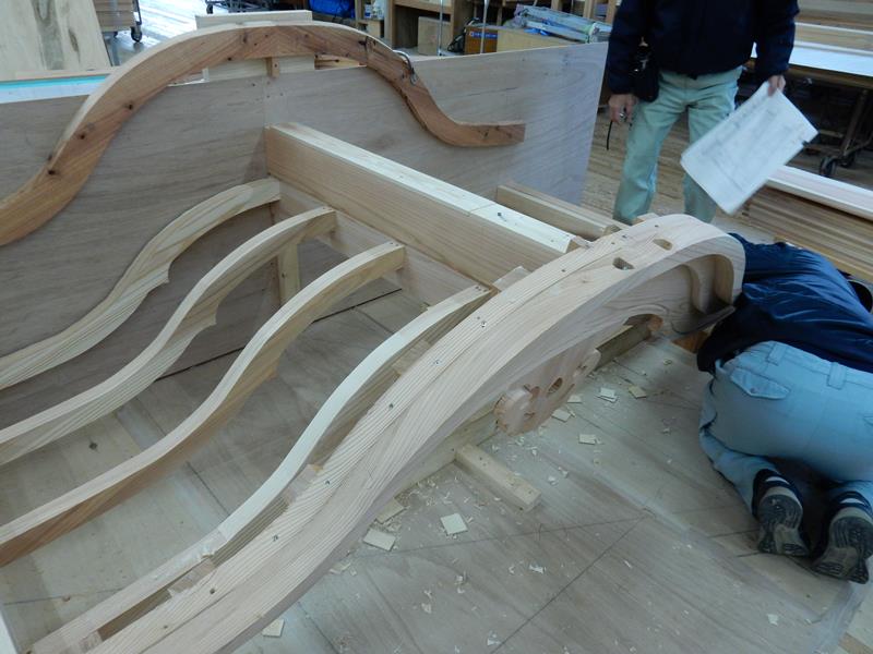 某旅館の玄関に取り付け予定の唐破風を製作中です。
