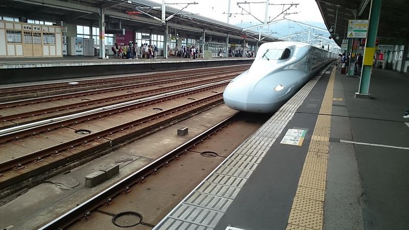朝8時 新幹線ホーム 上りはかなり人がいます。