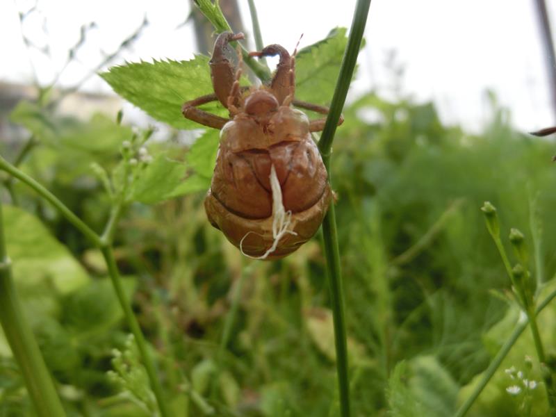 セミの抜け殻を発見。アブラゼミでしょうか。