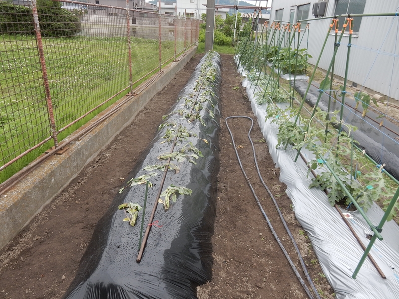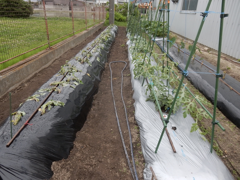 ピース等を植えていた畝にサツマイモを植えます