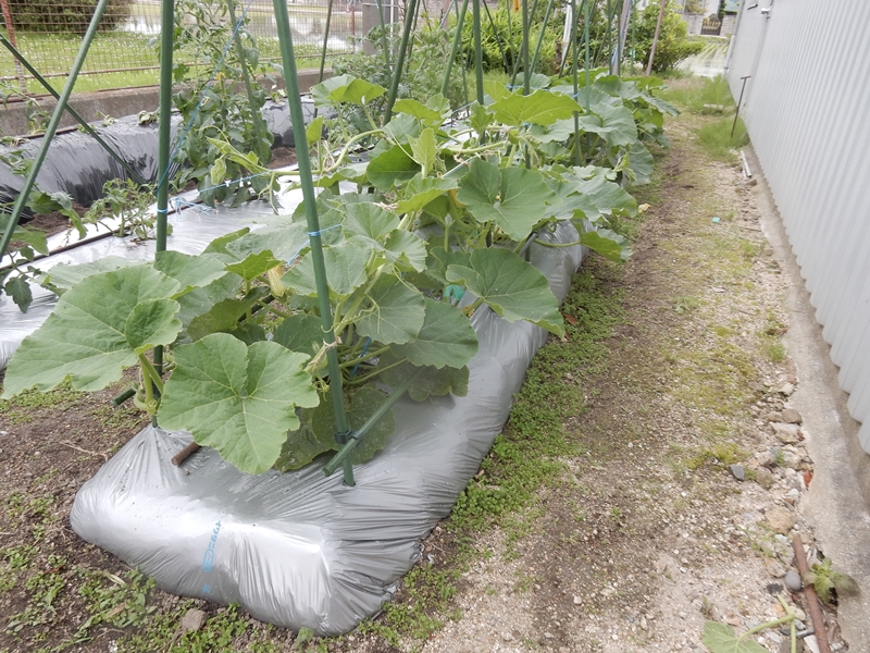 ピーマンとナスにも支柱を作りました。