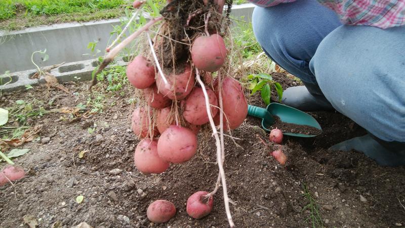 奥が男爵 赤いのがアンデスレッド 手前がキタアカリ