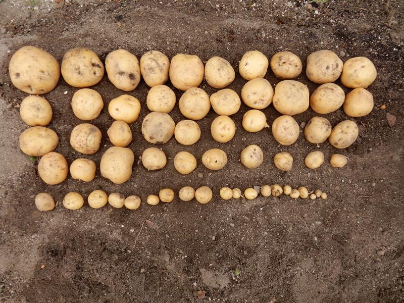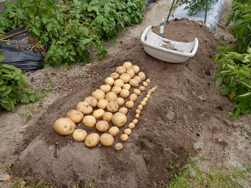 じゃがいもを試し堀り 逆さ植