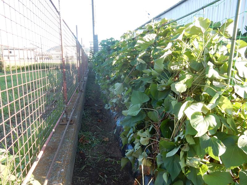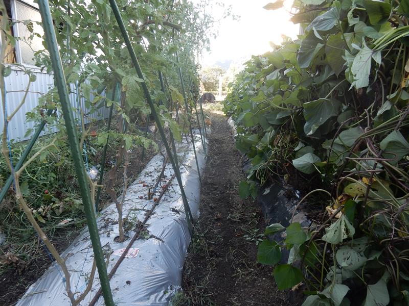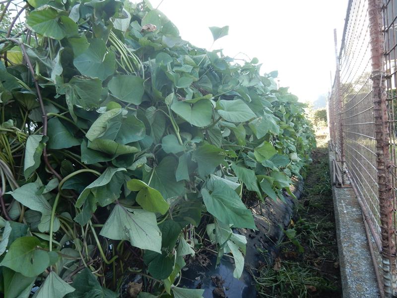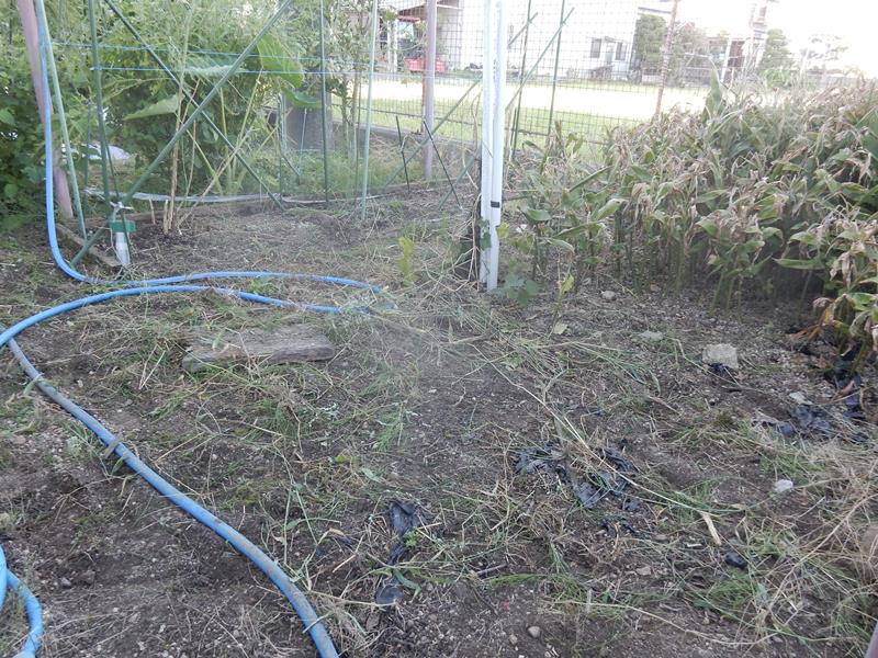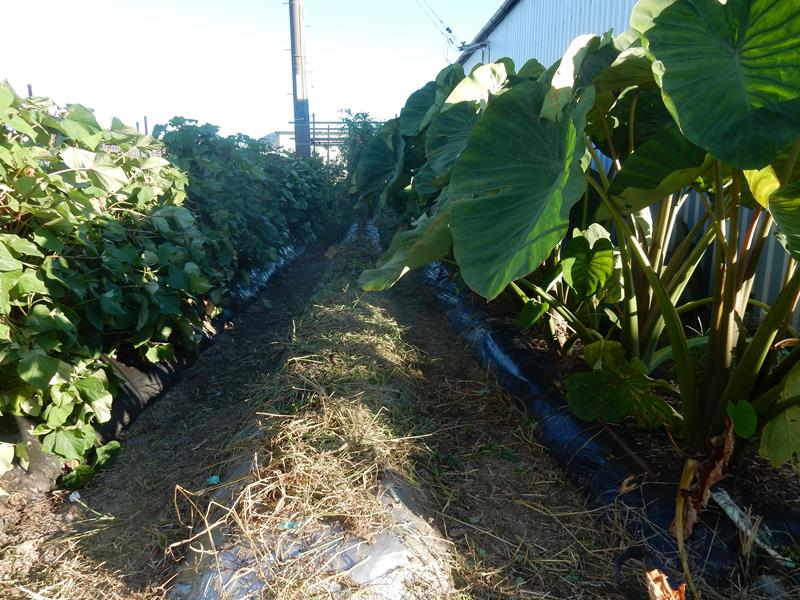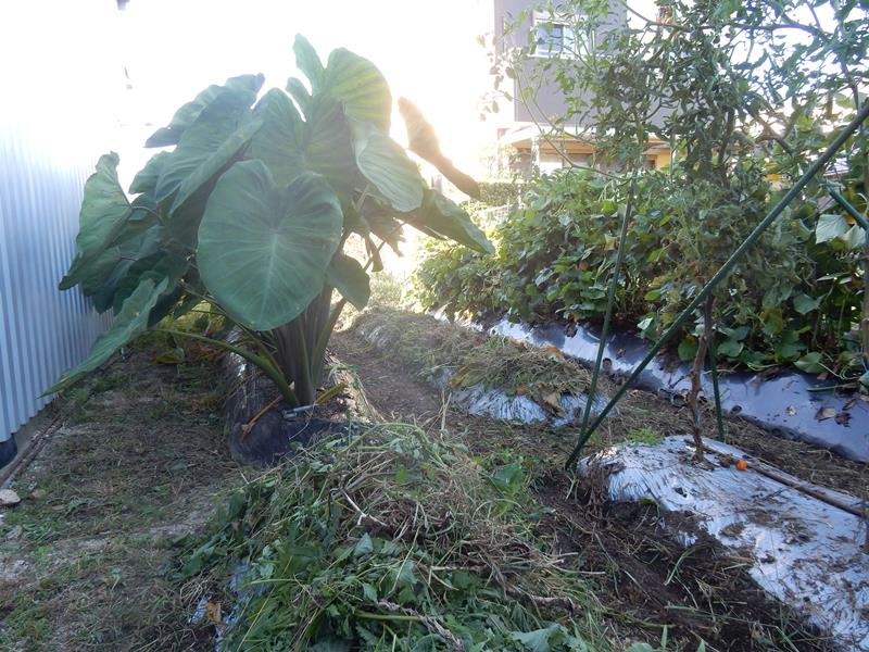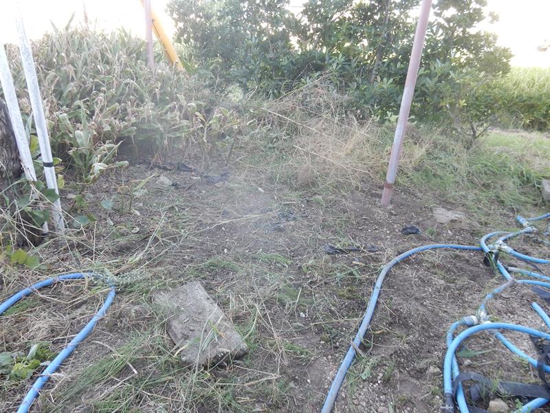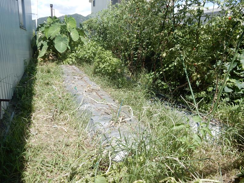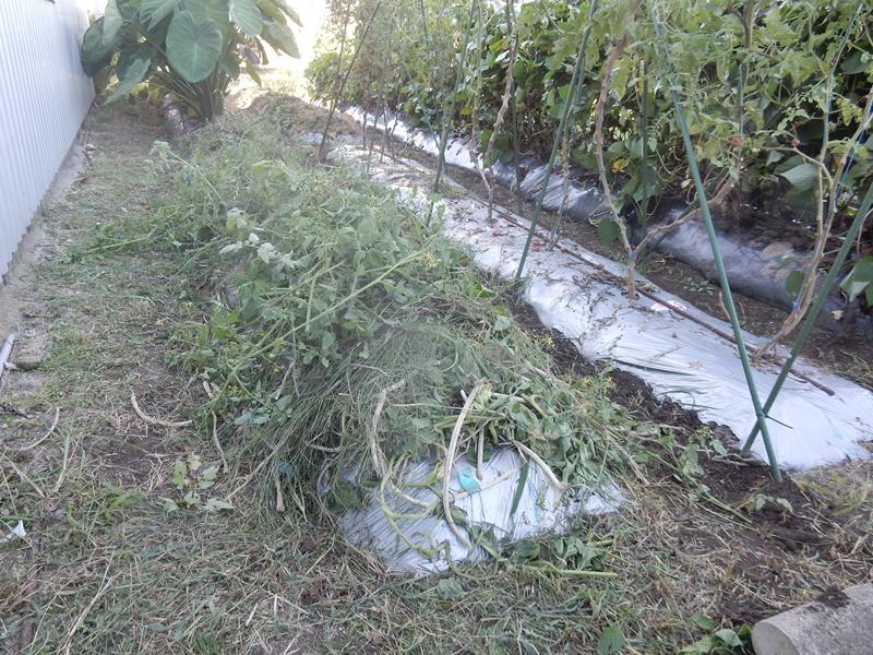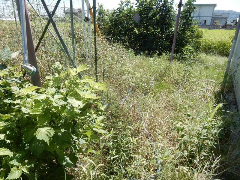切った草はマルチの上に広げておけば2~3日で半分くらいになります