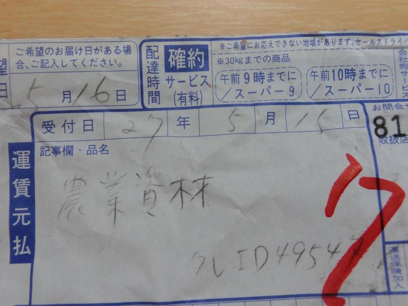 取り扱いは佐川急便です。追跡の伝票番号も記入してあります。