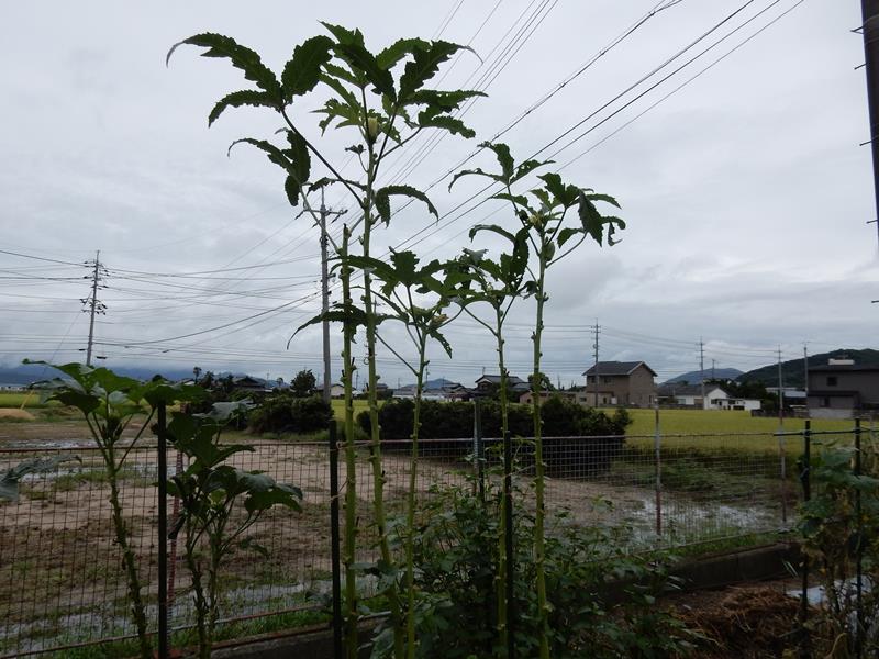 オクラが成長してデカくなりすぎ。