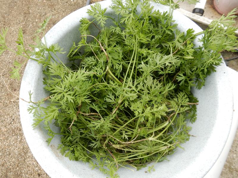間引いた人参葉 捨てずに食べます。