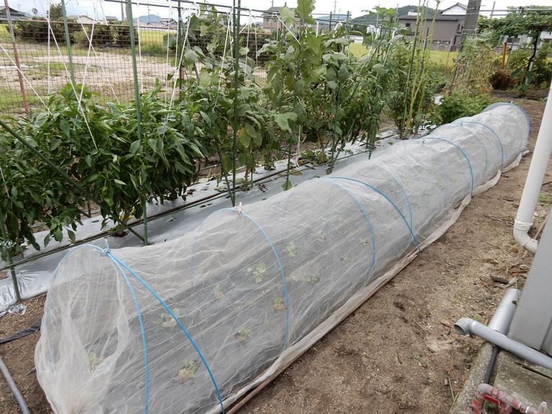 大根と蕪の網掛けを終え、ナスの手入れ