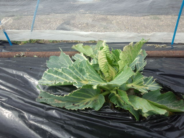 キャベツをかじられてしまった。急遽寒冷紗を張って、防虫対策。なんで、早くしなかったのか。。。 今考えても、分からない。