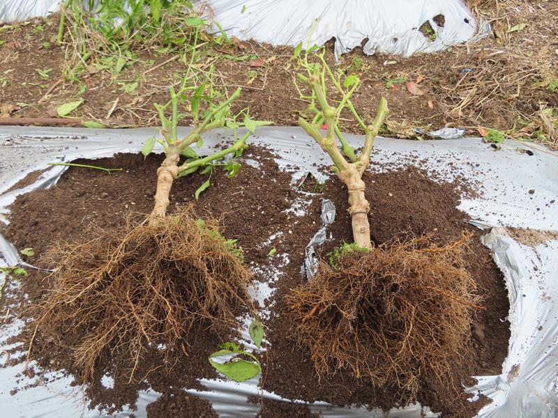スコップで根を切り掘り起こします