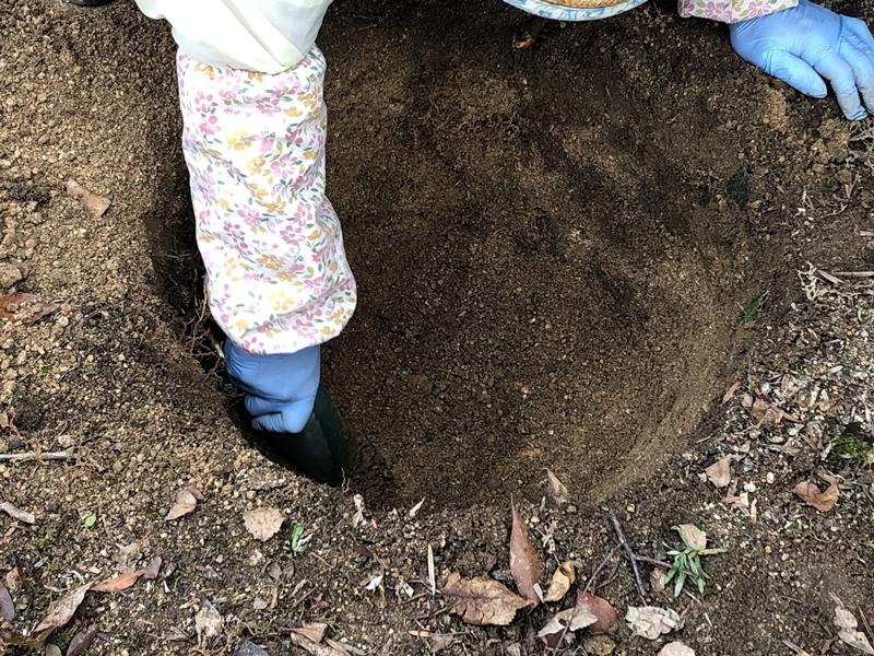 腐葉土、堆肥、肥料を入れて植え付け
