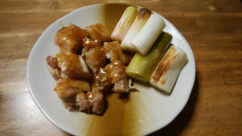 夕ご飯に鶏肉とネギを焼いてビールのアテになりました。