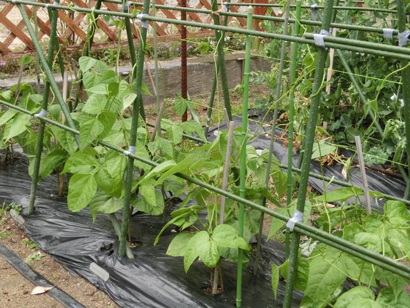 夕方からモロッコインゲンときゅうりの柵を作成。