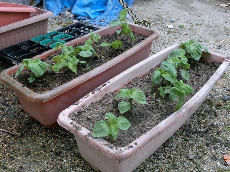 玉葱畑に生えてきた青紫蘇を移植。