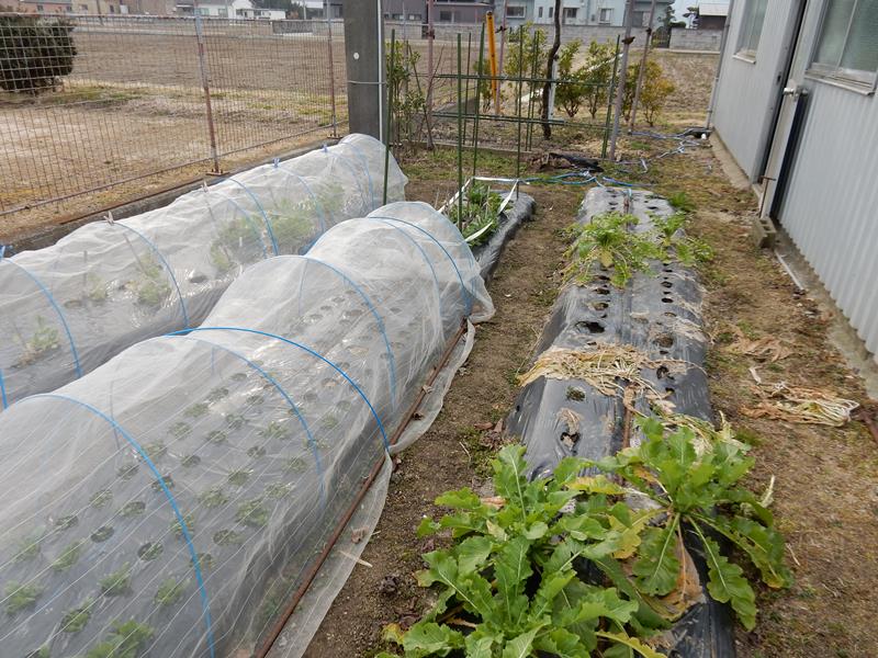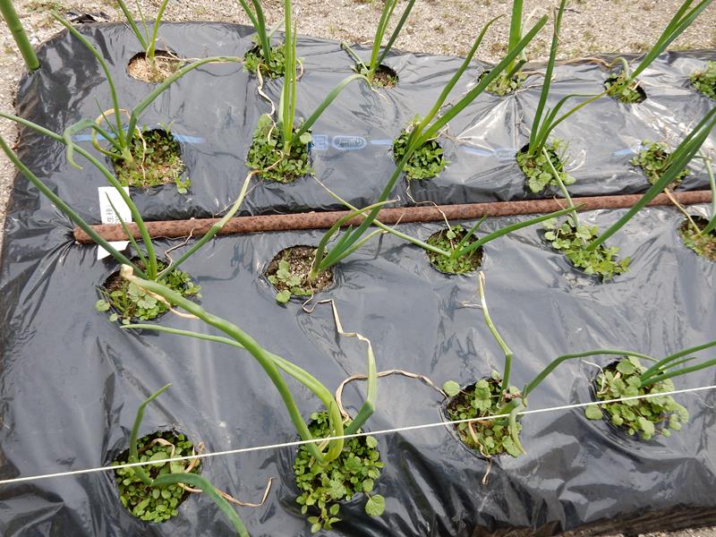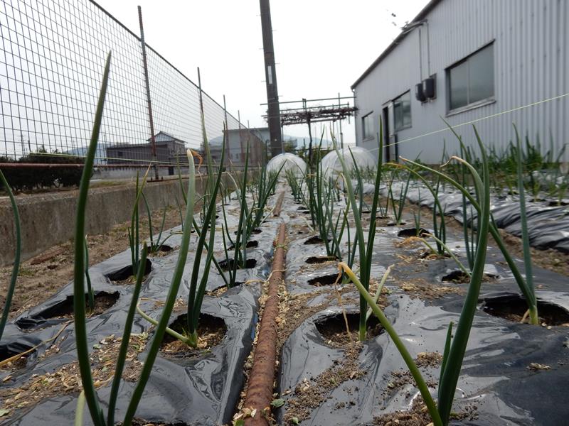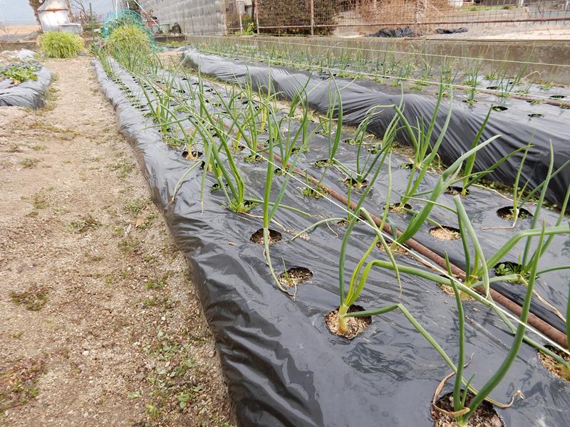 すこし暖かくなったので、玉葱の苗に雑草が生えています。
