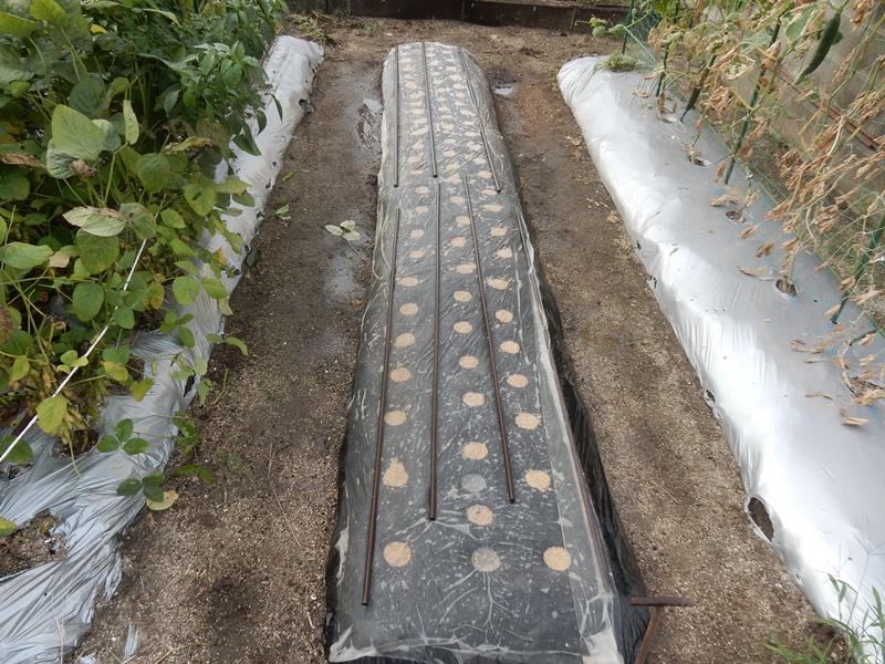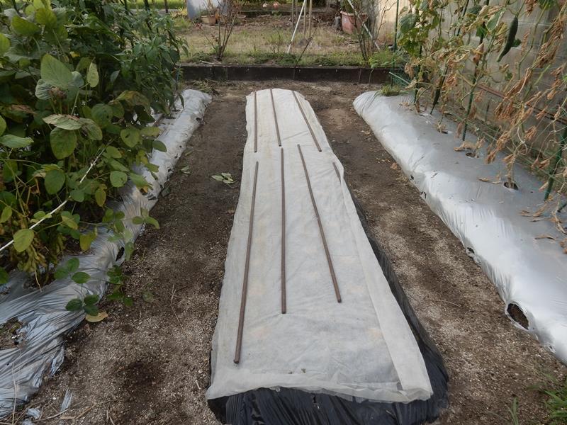 蒔いたあとは籾殻を入れて不織布を掛けます