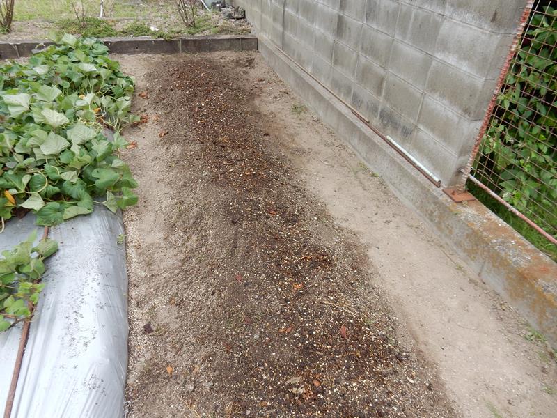 畝に撒いて後は鋤き込むだけ