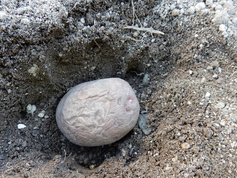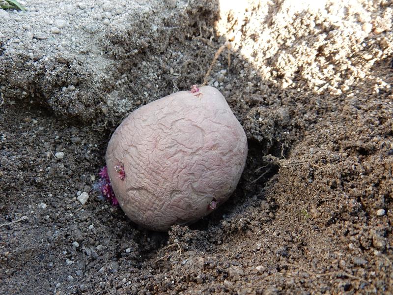 切っていない芋は芽を下にして上にある芽は欠き取っておきます。