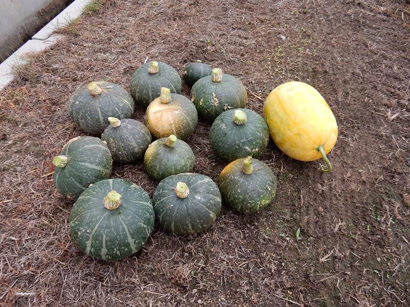 よく見ると収穫時期のカボチャがたくさんあります。