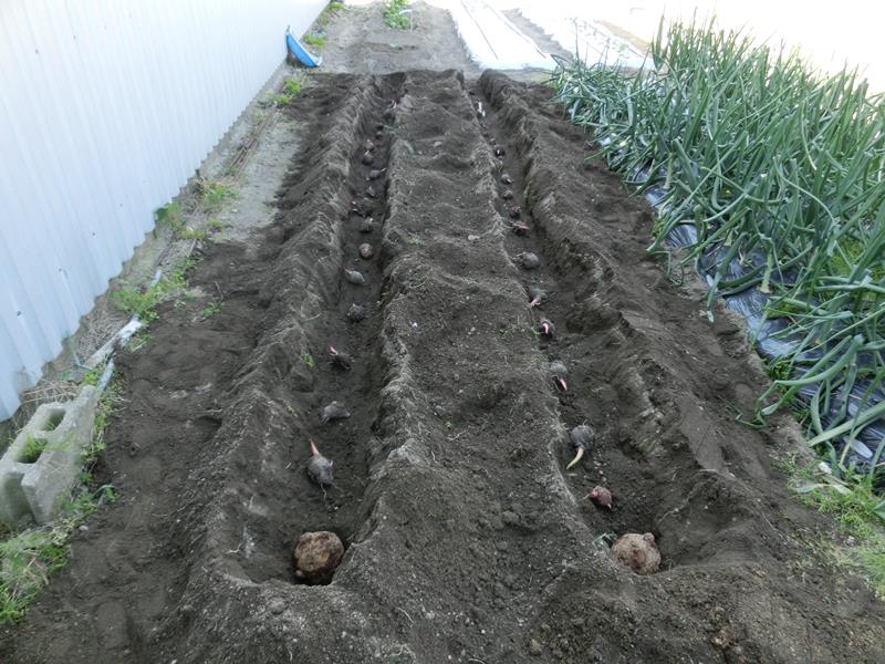 午後から里芋(赤芽大吉)の植え付け