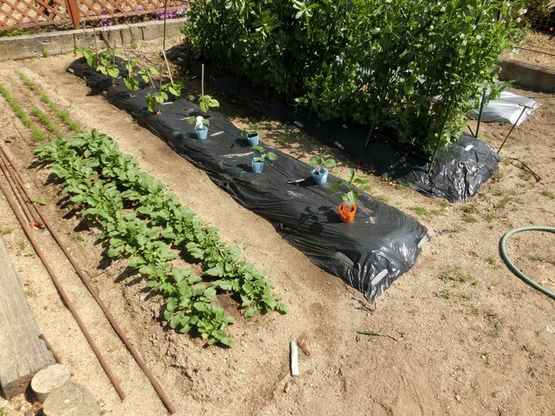 奥は、トマト4株、ピーマン2株、ナス4株、万願寺とうがらし1株