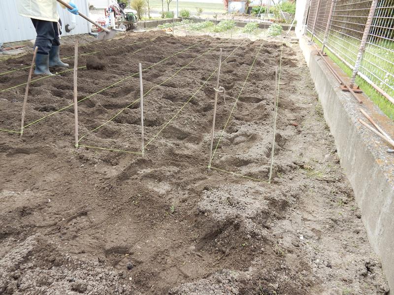 実の付く野菜用の化学肥料を入れて鋤き込みます。