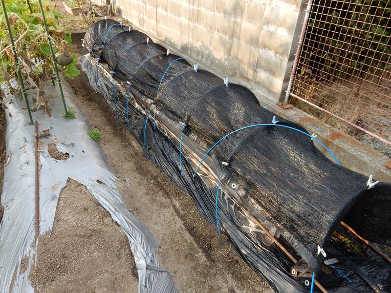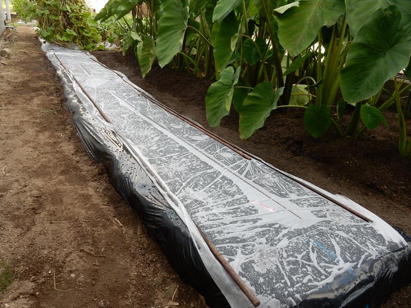 牛糞、化成肥料、有機肥料を鋤き込みマルチング。