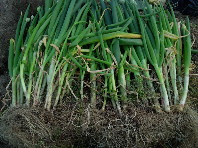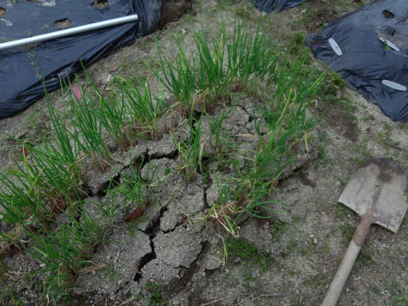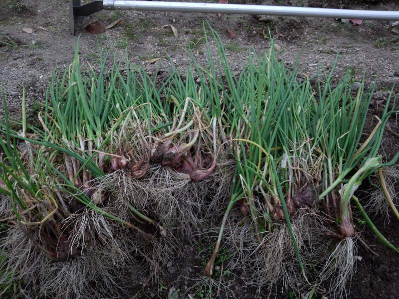 ワケギは球根を取ります。少し時期が早い気がします。
