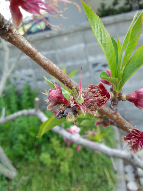 心配していた桃がなんとか、結実した模様。小さな実が見えます。