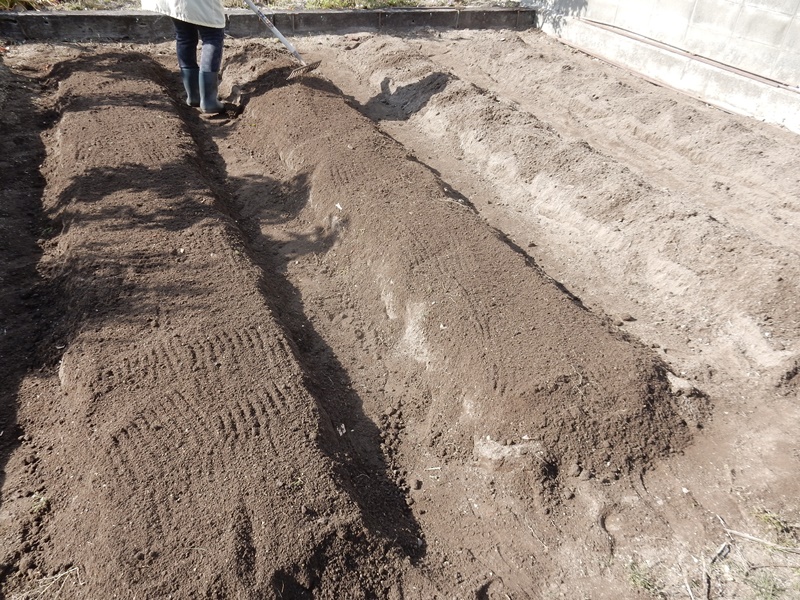 堆肥と肥料を入れて鋤いておきます