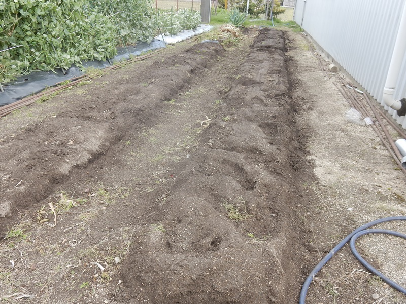 鋤いたあとは畝立て
