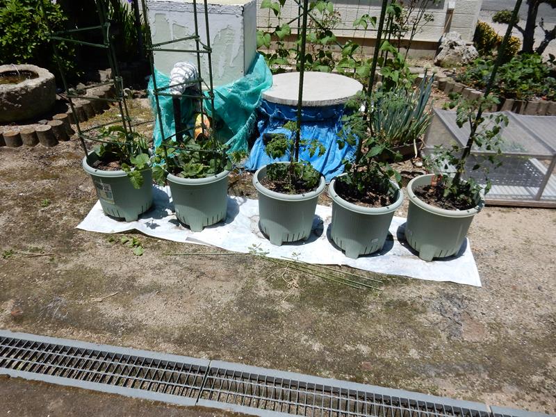 ここに4株 残った2株を葡萄棚の下に2株こっそりと植え付け