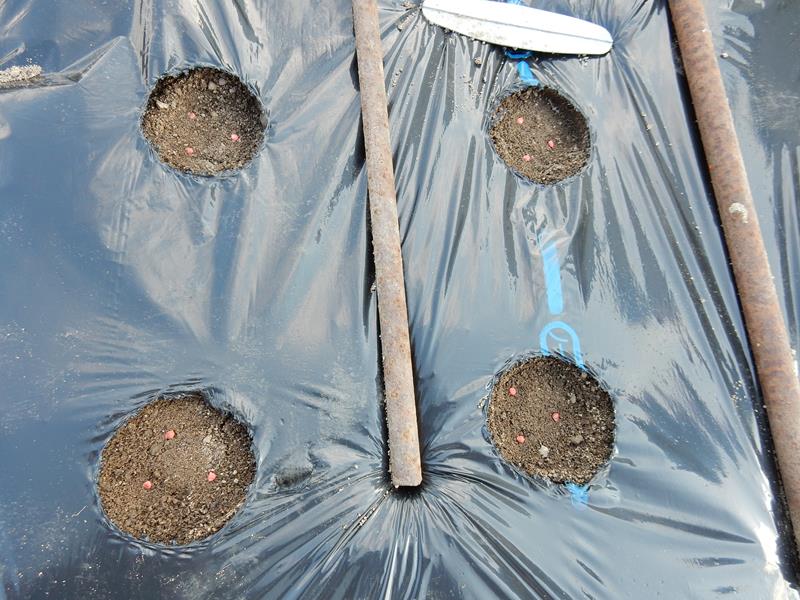 今年は筋蒔きを止めて、3粒ずつ蒔いてみます。