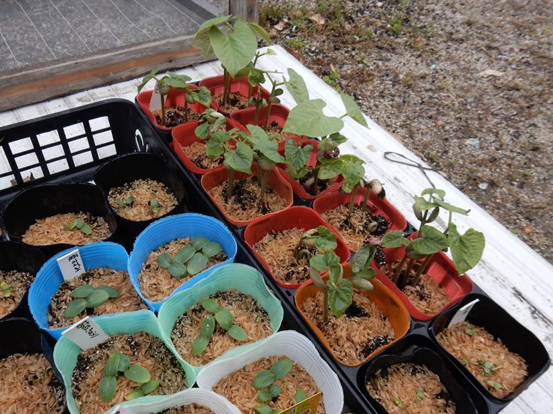 モロッコいんげんは本葉が出始めています。